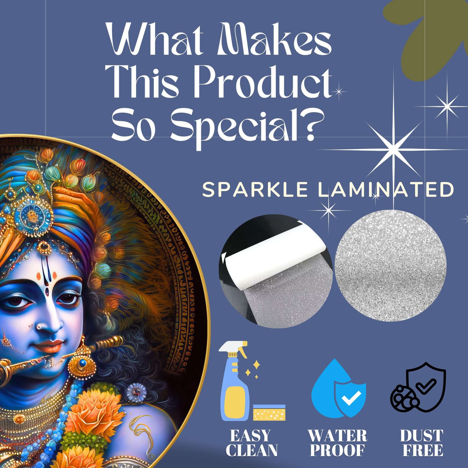 This Golden Round Frame painting with frame is made with high-gloss photo paper, featuring a unique glossy sparkle laminate that enhances the vibrancy and details of the artwork. Whether you are looking for a wall painting for living room or a wall painting for bedroom, this piece will add a touch of divinity and grace to any space. The high-quality finish ensures that this painting for wall decoration stands out.This Golden Round Frame painting big size is designed to fit seamlessly into your home decor, whether you are looking to enhance wall decor for bedroom or create an ambiance of peace in your living room. It is not just a Krishna Radha painting frame but also a meaningful symbol of love and devotion, making it one of the finest