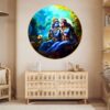 This Golden Round Frame painting with frame is made with high-gloss photo paper, featuring a unique glossy sparkle laminate that enhances the vibrancy and details of the artwork. Whether you are looking for a wall painting for living room or a wall painting for bedroom, this piece will add a touch of divinity and grace to any space. The high-quality finish ensures that this painting for wall decoration stands out.This Golden Round Frame painting big size is designed to fit seamlessly into your home decor, whether you are looking to enhance wall decor for bedroom or create an ambiance of peace in your living room. It is not just a Krishna Radha painting frame but also a meaningful symbol of love and devotion, making it one of the finest