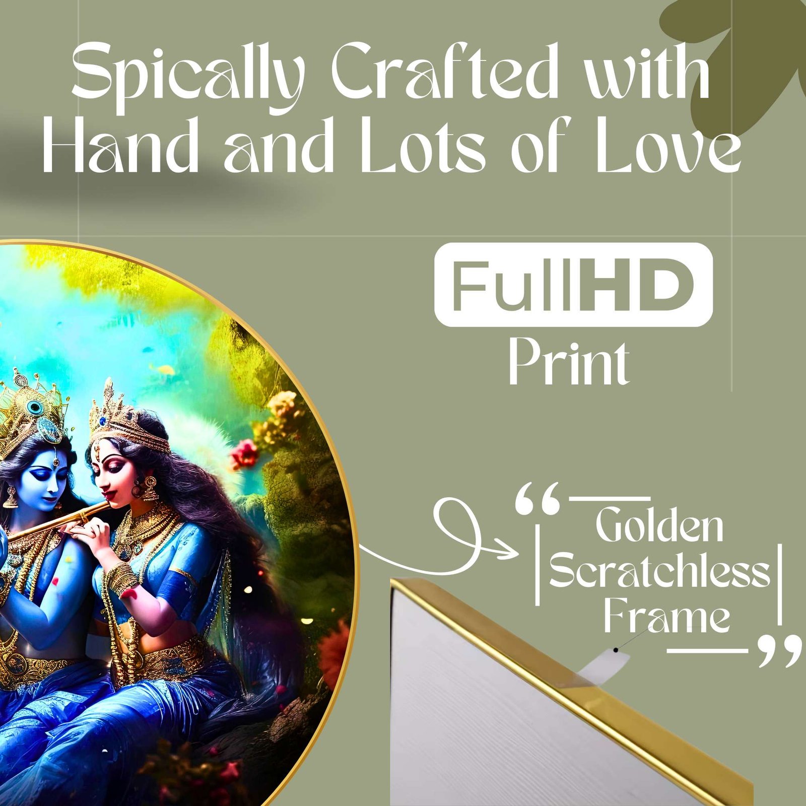 This Golden Round Frame painting with frame is made with high-gloss photo paper, featuring a unique glossy sparkle laminate that enhances the vibrancy and details of the artwork. Whether you are looking for a wall painting for living room or a wall painting for bedroom, this piece will add a touch of divinity and grace to any space. The high-quality finish ensures that this painting for wall decoration stands out.This Golden Round Frame painting big size is designed to fit seamlessly into your home decor, whether you are looking to enhance wall decor for bedroom or create an ambiance of peace in your living room. It is not just a Krishna Radha painting frame but also a meaningful symbol of love and devotion, making it one of the finest